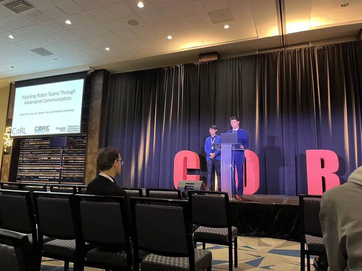 CoRL 2023 Oral TalkNov 7, 2023·Zixuan Wu· 0 min read PDF Code Project Image credit: Jeremiah CoholichDateNov 7, 2023 12:00 AM — 12:00 AMEvent2023 Conference on Robot LearningLocationThe Starling188 14th Street, Atlanta, GA 30361Last updated on Nov 7, 2023 ← MRS 2023 Oral Talk Dec 5, 2023